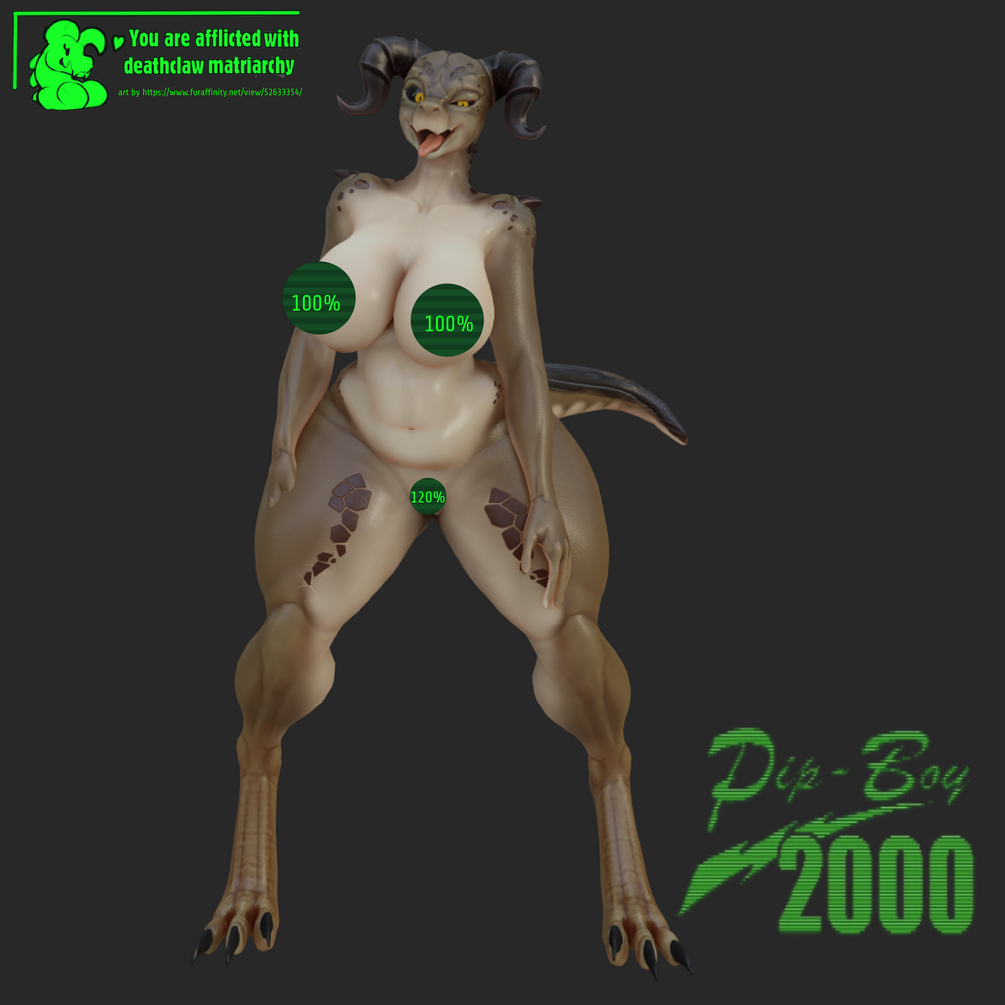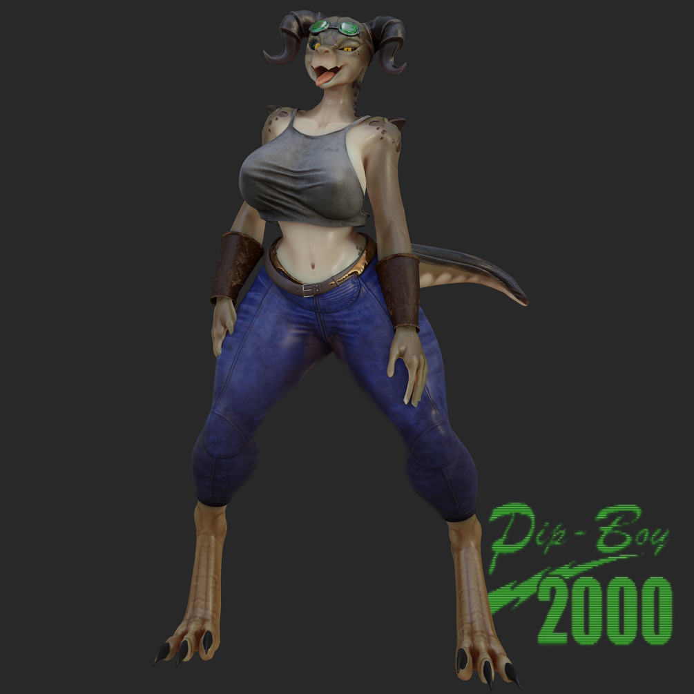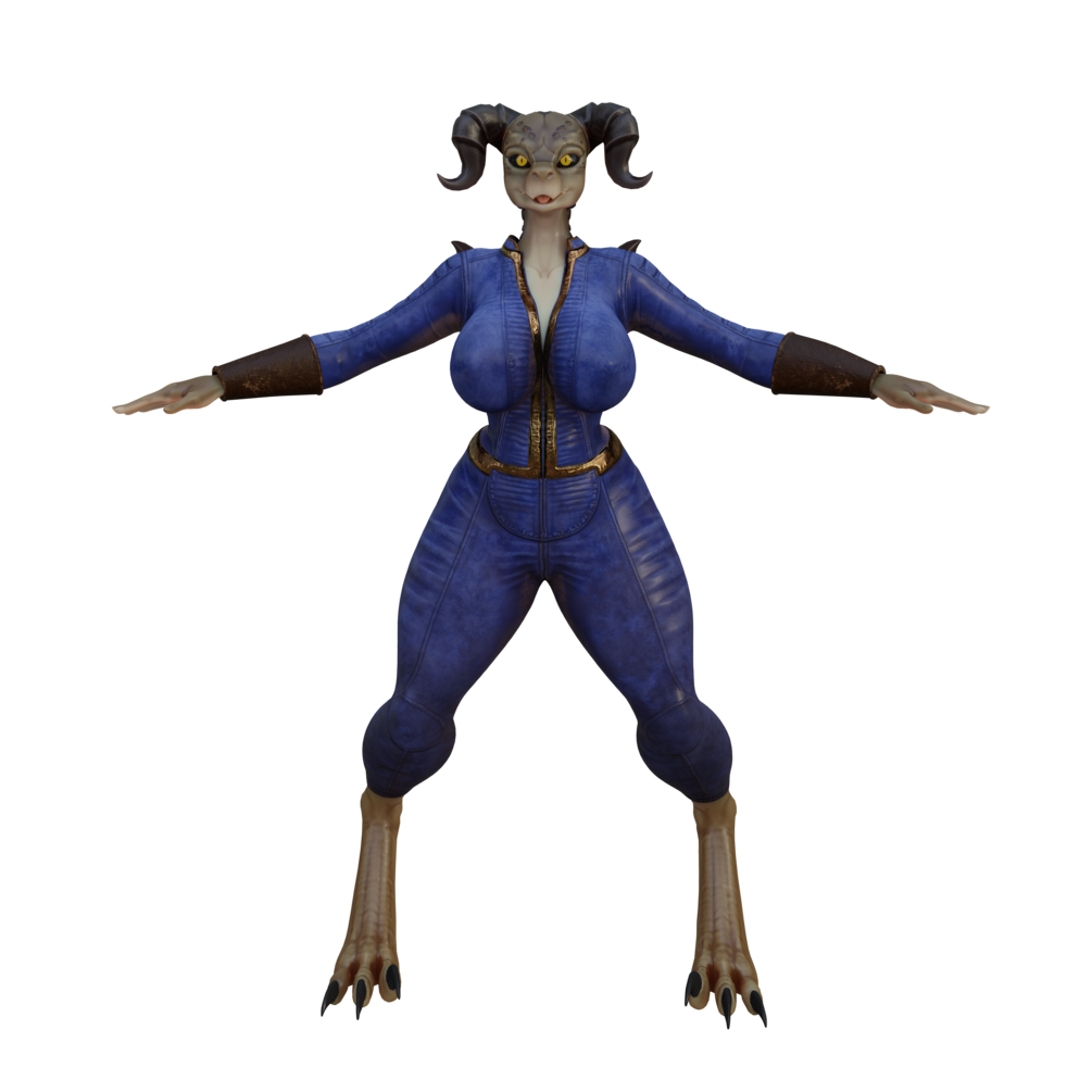 I was aiming for a mix of stylized, yet somewhat recognizable female deathclaw character, with an overall idea about them being a former vault dweller transformed due to an accident!